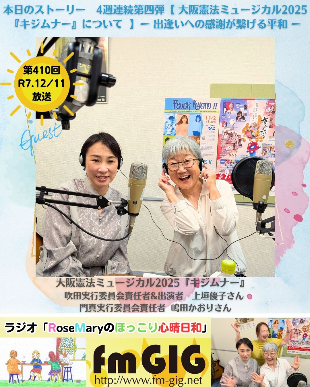 番組名「RoseMaryのほっこり心晴日和(こはれびより)」 毎週木曜日 夜21時30分~22時放送 スマホ、・・・2025年11/27ラジオ放送【 大阪憲法ミュージカル『キジムナー』について 】4週連続第二弾