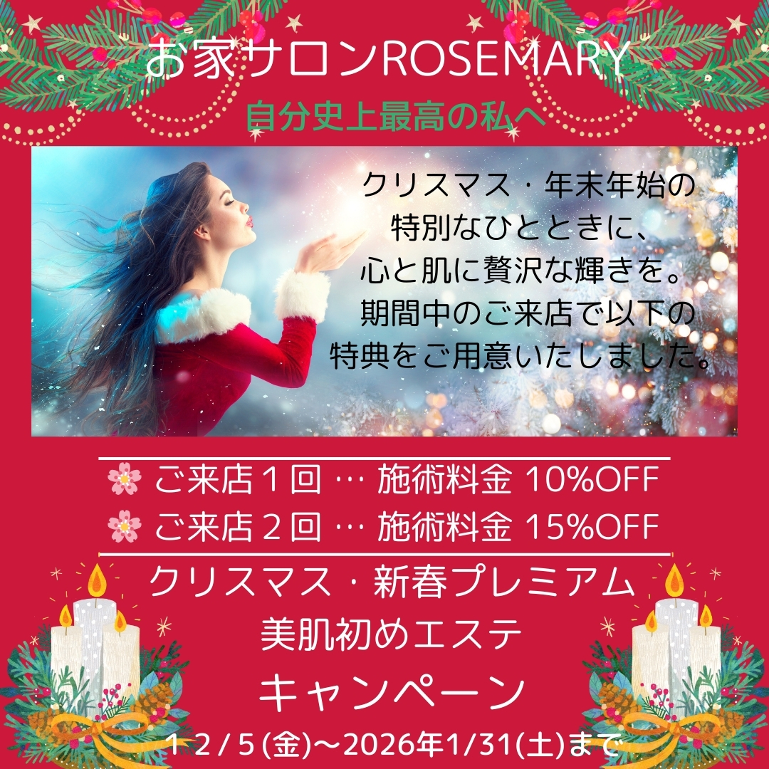 お家サロンRoseMary 【🎄クリスマス&🎍新春プレミアム美肌初め】エステキャンペーン✨